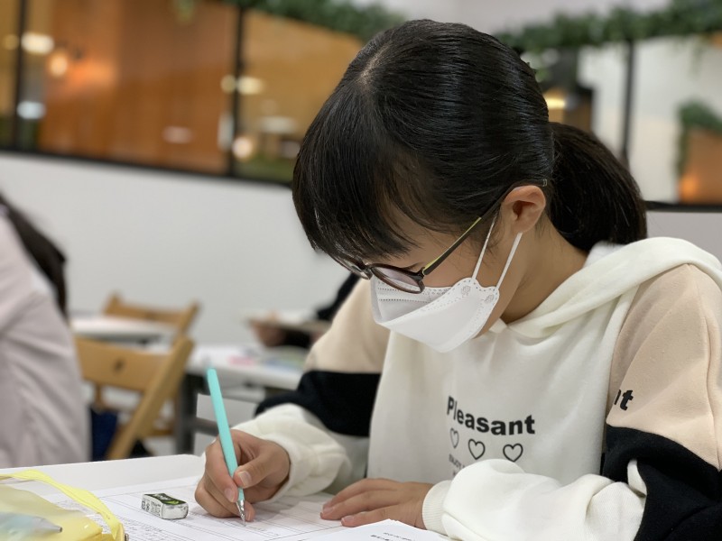 いつものマリン教室ではなく、本部教室でちょっと大人の雰囲気を感じながら取り組んでいます。