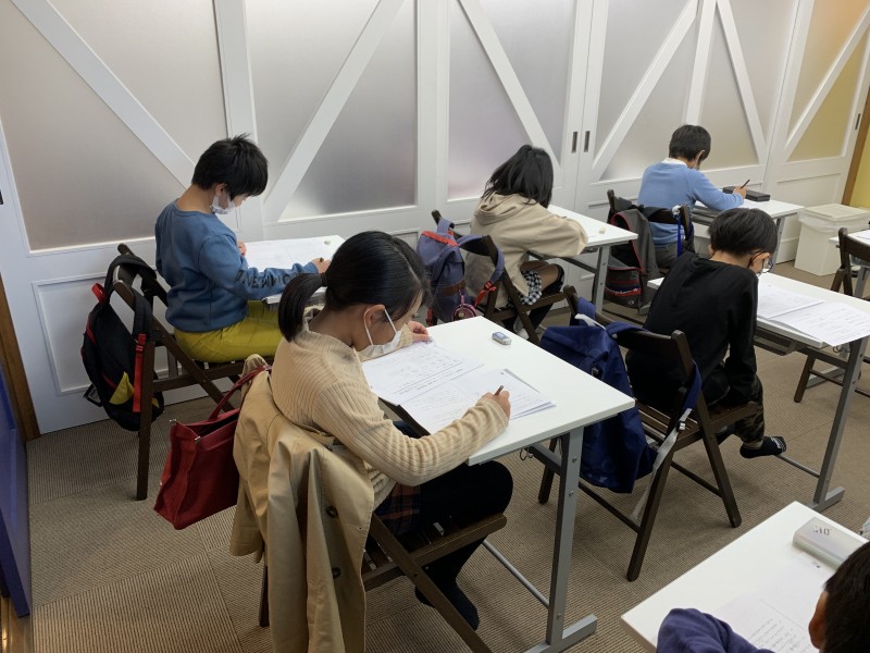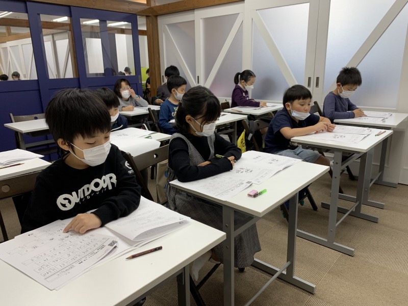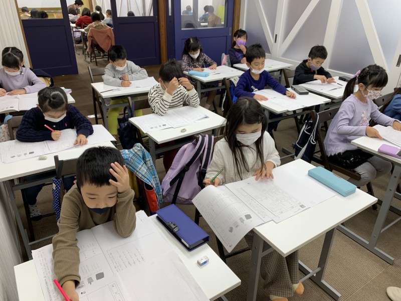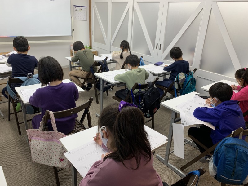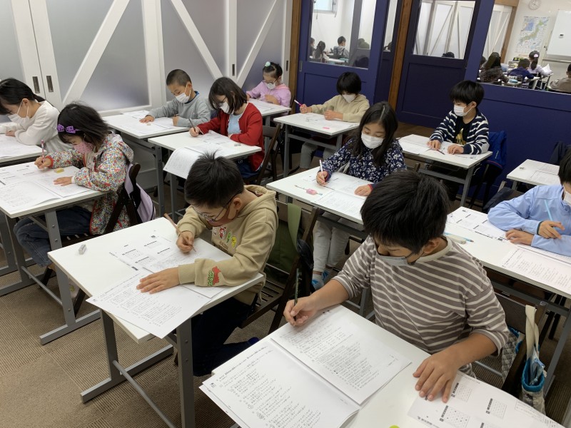 全国で11万人以上が受験するこのテストですが、今日は、マリン教室で小学1〜3年生の対策授業を行っています。