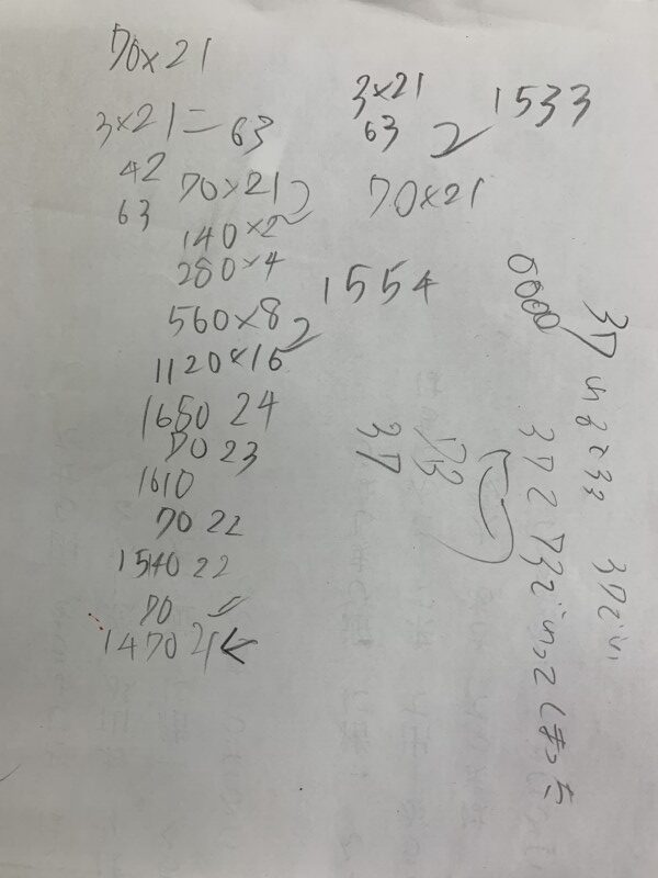 73×21を考えることに気づき、それを70×21と3×21に分けて考え、