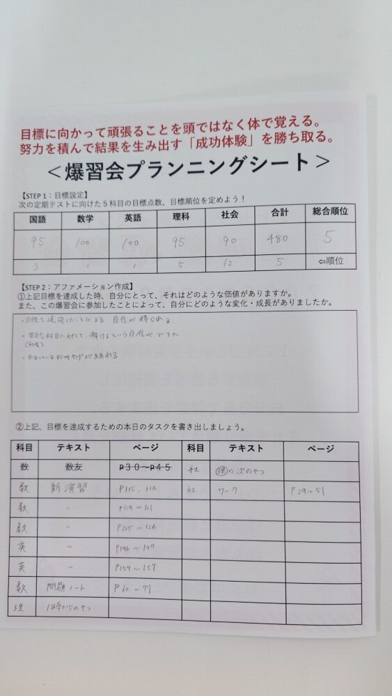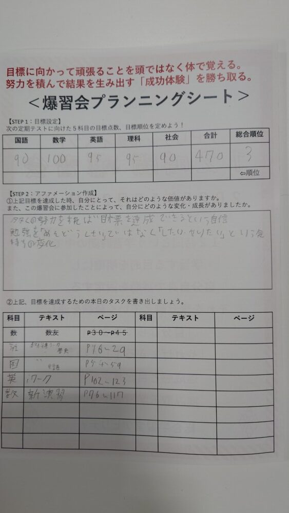 定期テストに向けて、社会を鍛える!という生徒もいれば、努力をすれば目標達成ができるという自信をつかむ!といった生徒もおります。