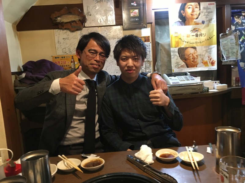 まだ初任給ももらっていないゆうごちゃんに頂きっぱなしでは何なので、では、御礼と就職祝いを兼ねて食事にでも一緒に行こうかと、今江先生も誘って次の日の夜、春期学習会の授業後に出掛けました。