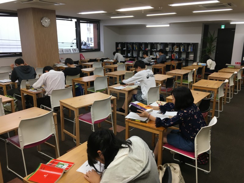 朝9時には、もう自習室にたくさんやってきていて、カリカリ、カリカリ、やってます!