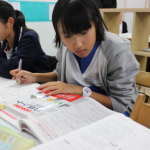 教室には音読の声が響き、皆集中して英文を覚えています。