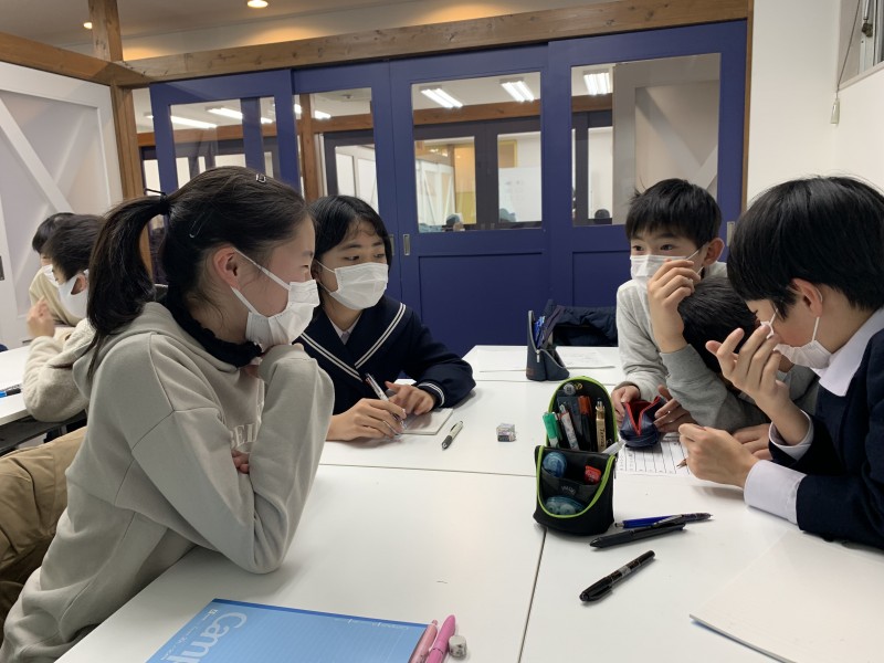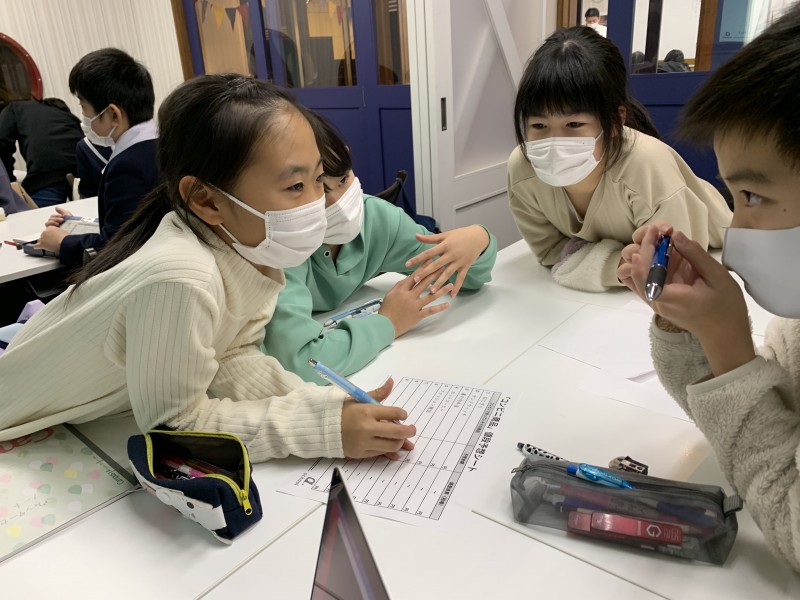身を乗り出すようにして考えていることからも、子どもたちが目を輝かせて取り組んでいることが分かるかと思います。