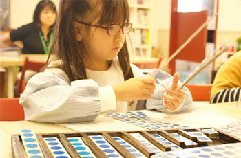 オリジナル教具を使い、数量を具体的に捉え,単なる計算ではなく高い数論理を身につける。